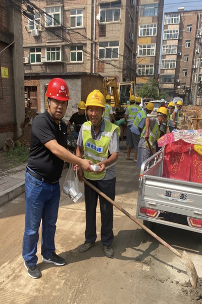 8月9日,骄阳似火,武安三供一业项目施工现场气温高达36℃,在太阳下稍微一活动,就满身冒汗。三供一业项目涉及20个社区、上万户居民,各社区遍布武安市各个方位。针对施工现场分布分散的情况,项目部本着防暑降温效果好,便于携带等特点最终确定购买藿香正气水。各社区负责人根据本社区花名册,上报所需数量;按各工种上班时间段,择时发放,确保藿香正气水发到每一个人的手中。最后,项目部领导班子按“包片制”方法,分头行动,在万年矿社区、郭二庄社区、云架岭小区施工现场把一盒盒藿香正气水送到工人们手中,询问他们的生活与工作情况,并对他们付出辛勤劳动以及为了“大家”舍“小家”的精神致以崇高的敬意和由衷的感谢。工人们表示,项目部领导待我们如亲人一般,我们一定不辜负领导的期望,更加努力工作。
